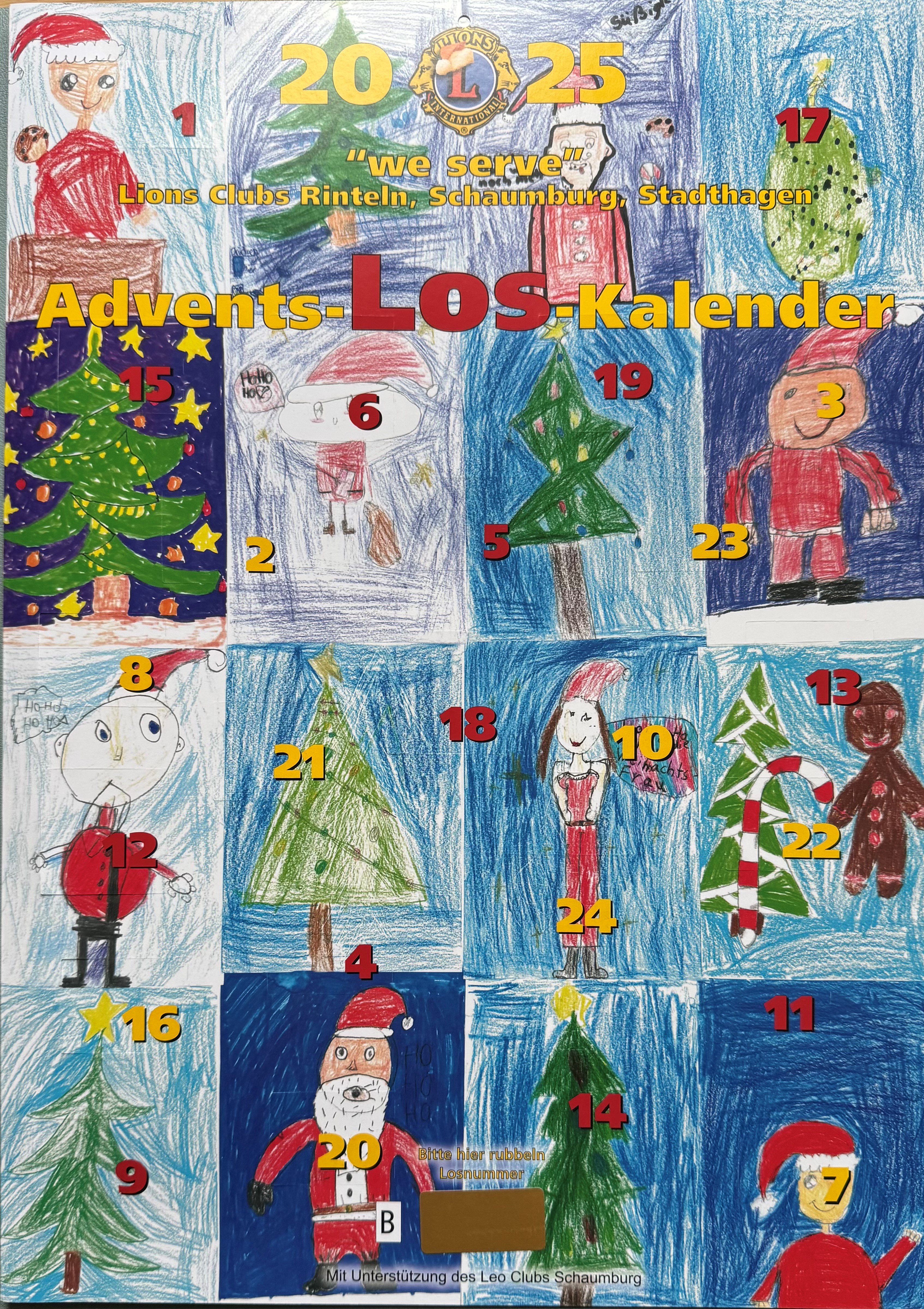 Mit dem Erlös aus dem Advents-Los-Kalender 2025 fördern die Mitglieder der drei Lions Clubs Rinteln, Schaumburg und Stadthagen mit Unterstützung des Leo Clubs Schaumburg in diesem Jahr die Aktion